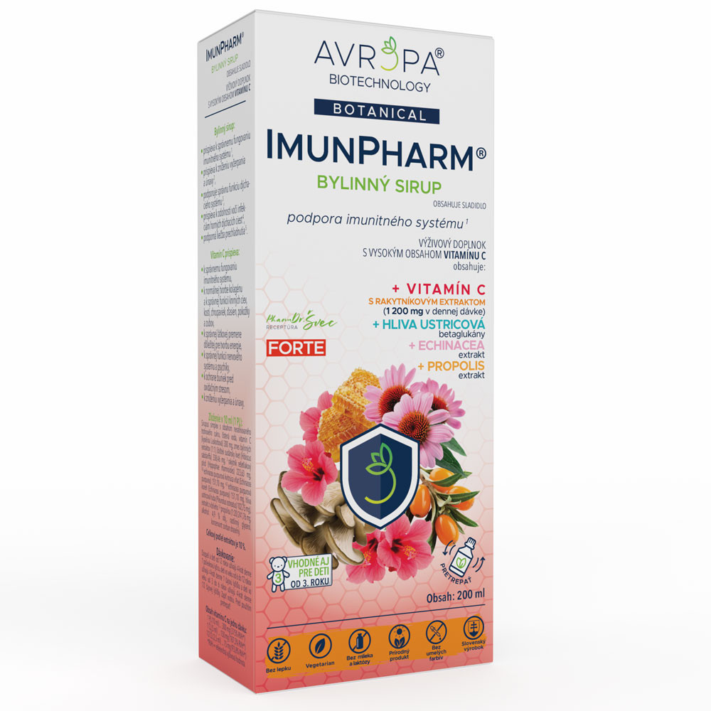 ImunPharm Forte sirup na imunitu s vitamínom C, propolisom a echinaceou. Bylinný sirup pre celú rodinu. AVROPA.